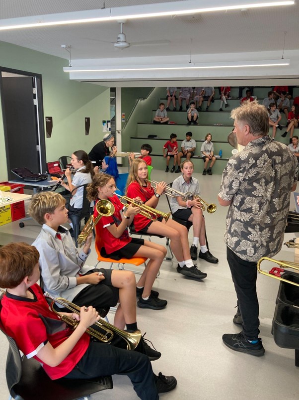 In the first week of term, all of the year 7 students at each campus were given the chance to try playing a woodwind or brass instrument. Three of our Instrumental Music Teachers, Marc Matthews, Karen Doyle and Chris Brown, demonstrated each of the instruments they teach, then, after a short performance involving five instruments, students were invited to try playing sax, flute, clarinet, trumpet or trombone.